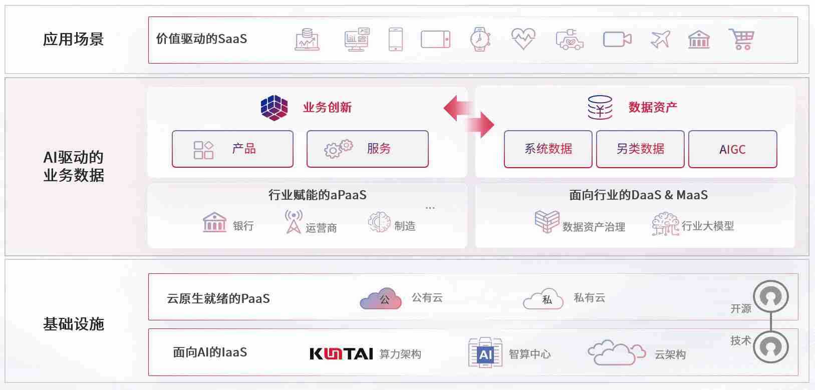 数字时代,,,,围绕企业数字化转型的关键要素,,,,z6mg人生就是博数码开创性的提出数云融合战略和技术体系框架,,,着力在云原生、、、、数字原生、、、、AI原生和信创产业上架构产品和服务能力,,,为处在不同数字化转型阶段的快消零售、、、、汽车、、金融、、、医疗、、政企、、、、教育、、、、运营商等行业客户提供泛在的敏捷IT能力和融合的数据驱动能力,,构建跨界融合创新的数字业务场景和新业务模式,,助力企业级客户建立面向未来的核心能力和竞争优势,,全面推动社会的数字化、、智能化转型升级。。。。