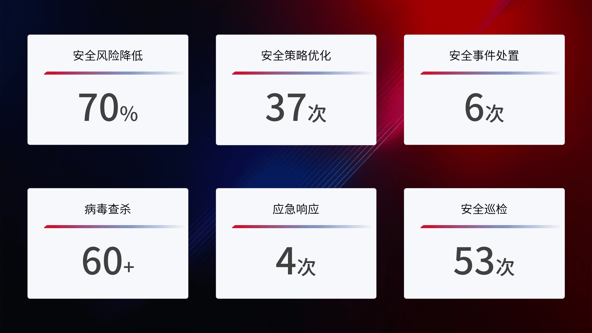 提供全面的安全事件报告体系,,包括处置报告、、周报、、、、季度和年度总结,,,,结合持续监控,,,帮助客户深入了解网络安全状况。。。